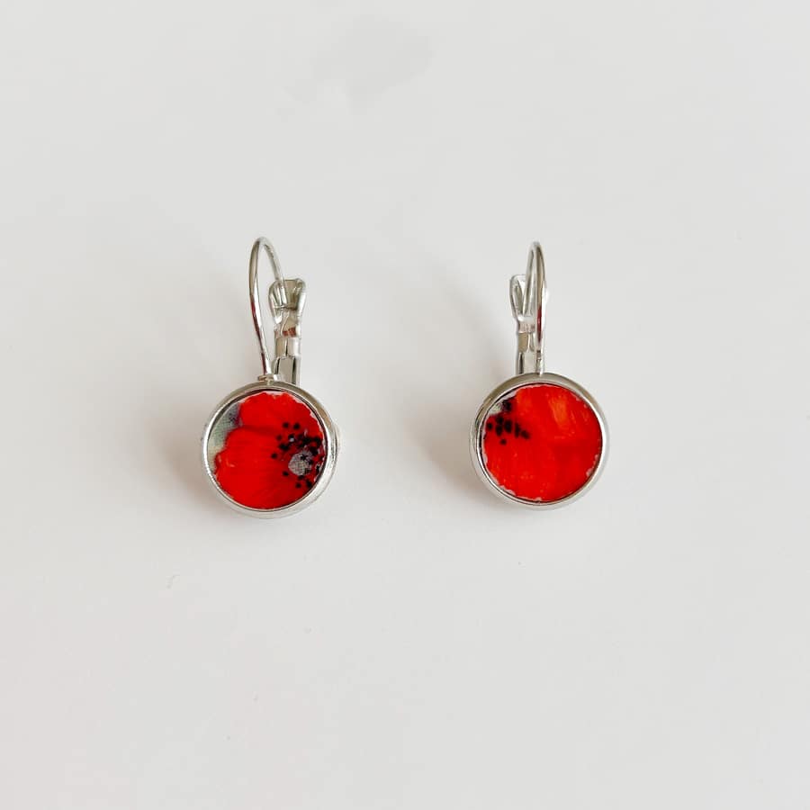Churchill china earrings set in hypoallergenic stainless steel bezel.