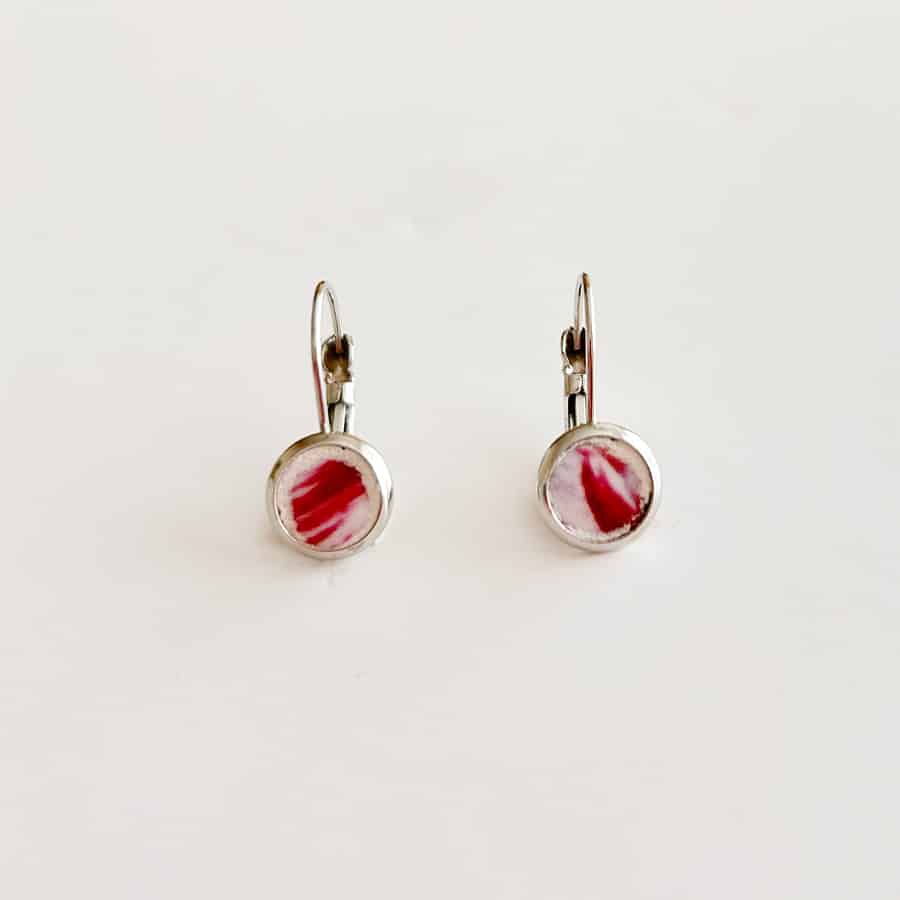 Churchill china earrings set in hypoallergenic stainless steel bezel.